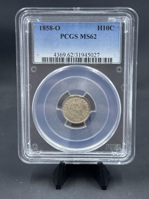 This 1858-O Liberty Seated Half Dime has been certified as MS-62 by