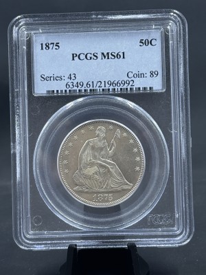 This 1875 Liberty Seated Half Dollar has been certified as MS-61 by